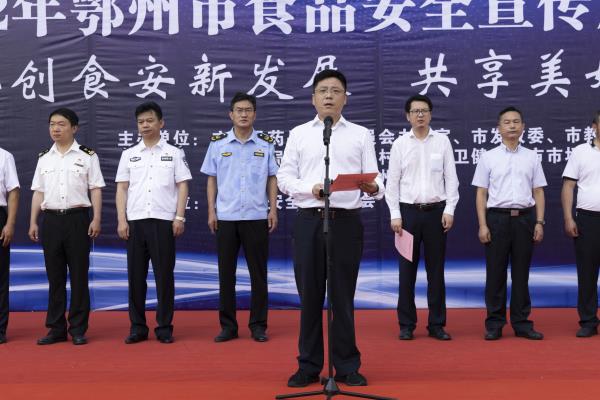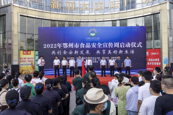 7月28日上午,以“共创食安新发展 共享美好新生活”为主题的2022年鄂州市食品安全宣传周主场活动在新亚太广场隆重举行。副市长彭波出席活动并宣布2022年鄂州市食品安全宣传周正式启动,市政府副秘书长曹晖主持启动仪式,市食药安委相关成员单位、食品监管人员、行业协会、食品从业者代表、新闻媒体等200余人参加了活动。