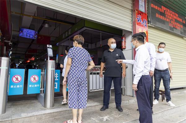 在农贸市场入口处,彭波检查了农贸市场落实扫码、测温、戴口罩等防疫工作,向市场开办方了解了农贸市场疫情防控管理情况。他指出,市场监管部门要继续坚持“外防输入、内防反弹”总策略和“动态清零”总方针不犹豫、不动摇,加强进口冷链食品集中监管,加强药店防控,严格督促全市药店落实入店必核两码、口罩必戴、体温必测,“四类药品”必登记。要督促农贸市场、药店、冷链、外卖等从业人员按规定做好定期核酸采样检测。