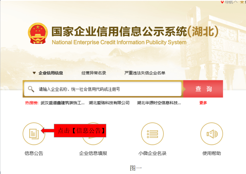 1如图1所示:进入【国家企业信用信息公示系统】首页,点击【信息公告】。