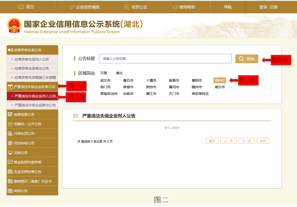 3.如图2所示第二步:继续点击【严重违法失信企业名单公告】。
